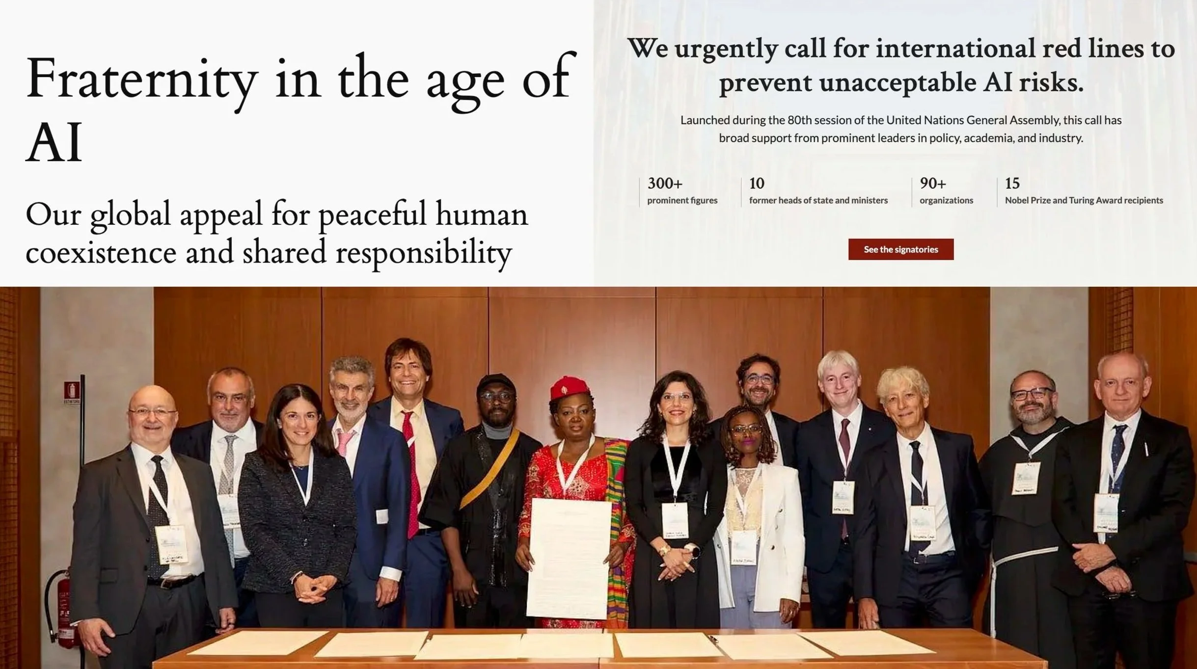 The Global Appeal for Peaceful Human Coexistence and Shared Responsibility, - coordinated by Paolo Benanti, lead AI advisor to Pope Leo XIV - calls for “demands moral courage, meaningful accountability mechanisms, farsighted leadership from all sectors of society and binding international treaty establishing red lines and an independent oversight institution with enforcement powers.”